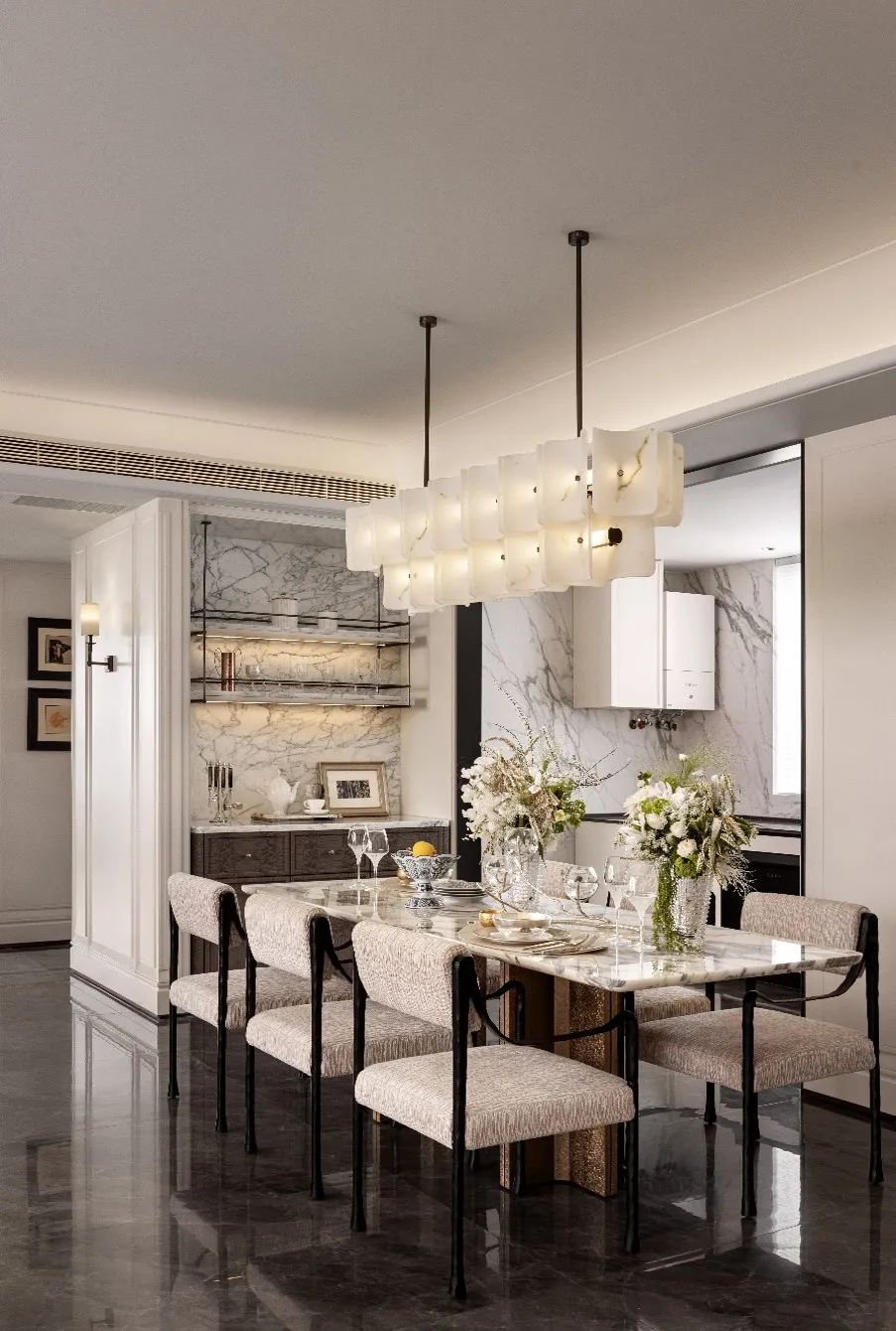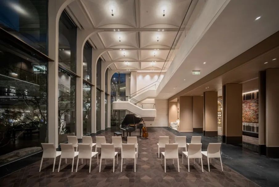 借鉴汤唯喜爱的东京安缦、扎哈·哈迪德流动线条的美学语汇,融合定制绿玉大理石、玫瑰金与柔光织物,营造出兼具艺术氛围与尊贵体验的多功能会客场域。从接待厅到行政酒廊,皆以大师级设计语言重新定义高端生活方式,空间即品牌,所见即所值。