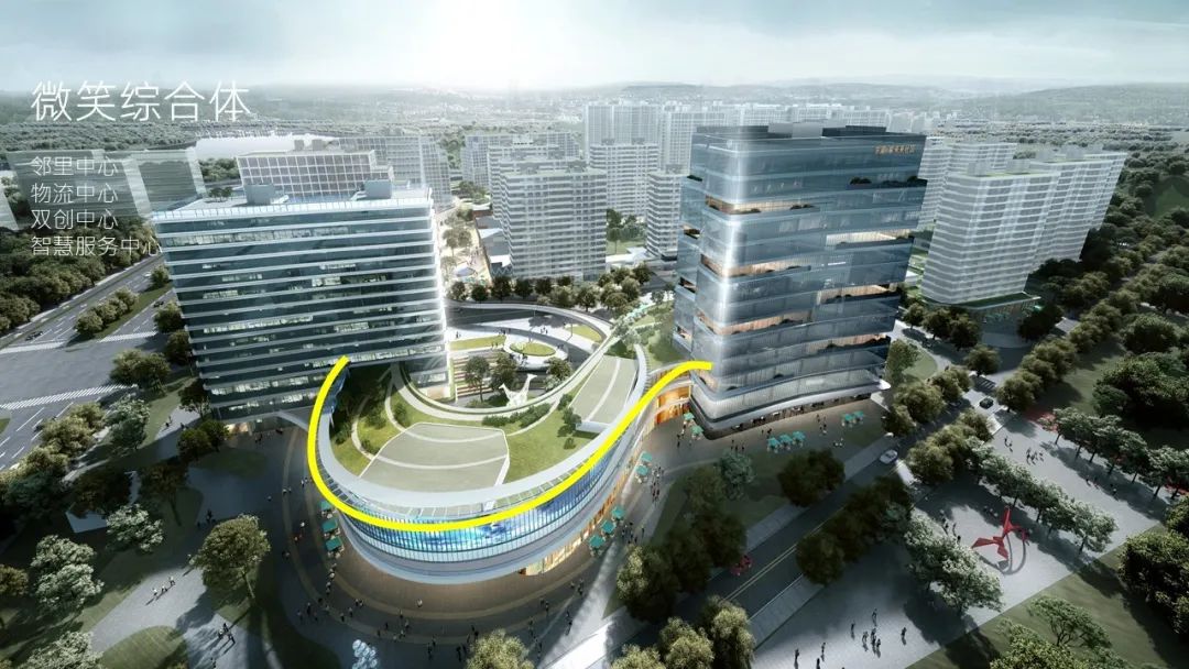 “一心”是指东湄微笑综合体,包含邻里中心、物流中心、双创中心和智慧中心四大模块,全面覆盖创业场景与生活服务场景。