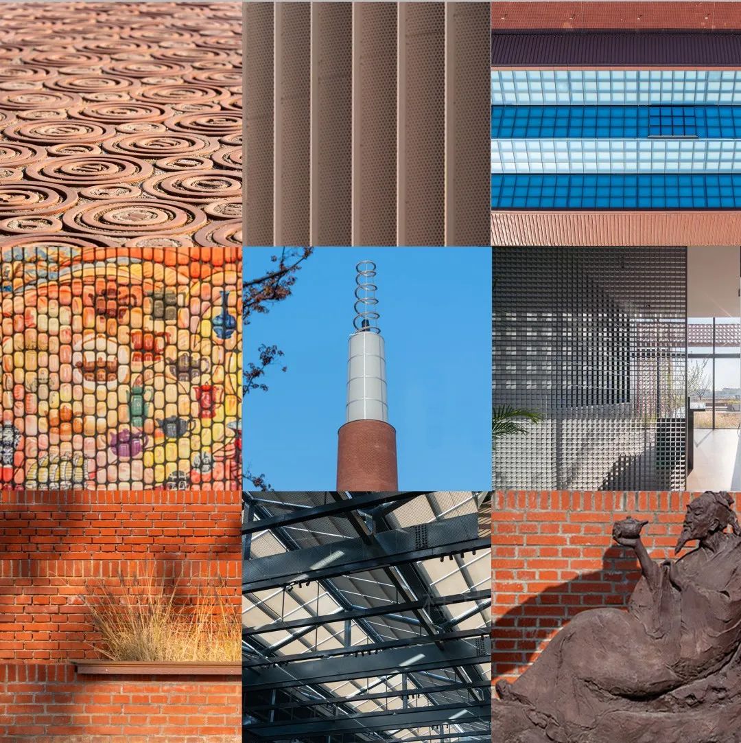 场地内红砖铺就的工坊街巷延续工业时代的肌理,与老烟囱、保留老厂房构成跨越时空的对话场域;工字钢框架、攀缘植物、围合的庭院空间内点缀吴为山大师的陶艺作品。不同时空元素的魔幻拼贴,创造出富有叙事性的沉浸式文化体验空间。