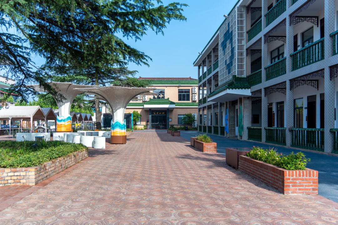 在此片区的更新设计中,设计尊重原有历史建筑风貌,尤其关注片区内的许多老建筑及保护建筑。保留传统工艺修复陶花砖、水泥砖、马赛克、琉璃瓦等老材料,并在入口区域以特色陶圈铺装限定空间序列,形成“陶”的文化场域。