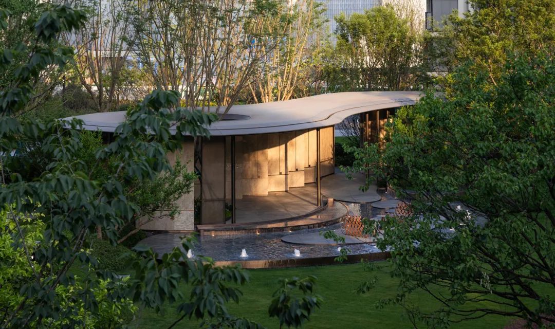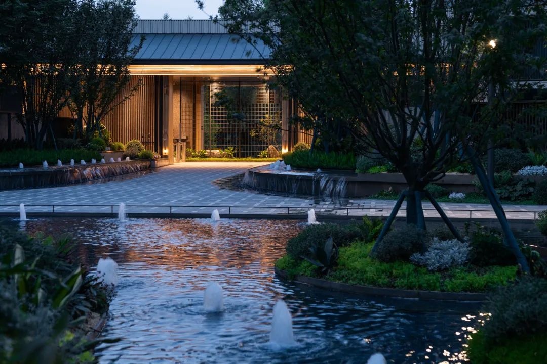 两年前所呈现的天府九里展示区景观,我们借鉴蜀中园林的次序递进,游廊自由串联,借助场地本身的微高差,呈现出张弛有度的节奏和高低错落起伏的空间层次。大区建成后,原来的展示区作为会所持续被使用。