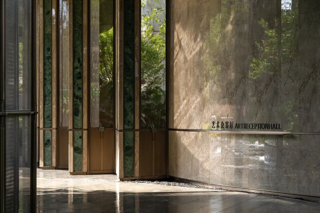 蜀中山水的风貌和四川盆地上流淌着宛如碧绿绸带般的河谷绿洲,是天府九里大区的设计灵感来源。河谷的曲线元素,被描摹在开阔而参差的中庭空间中。