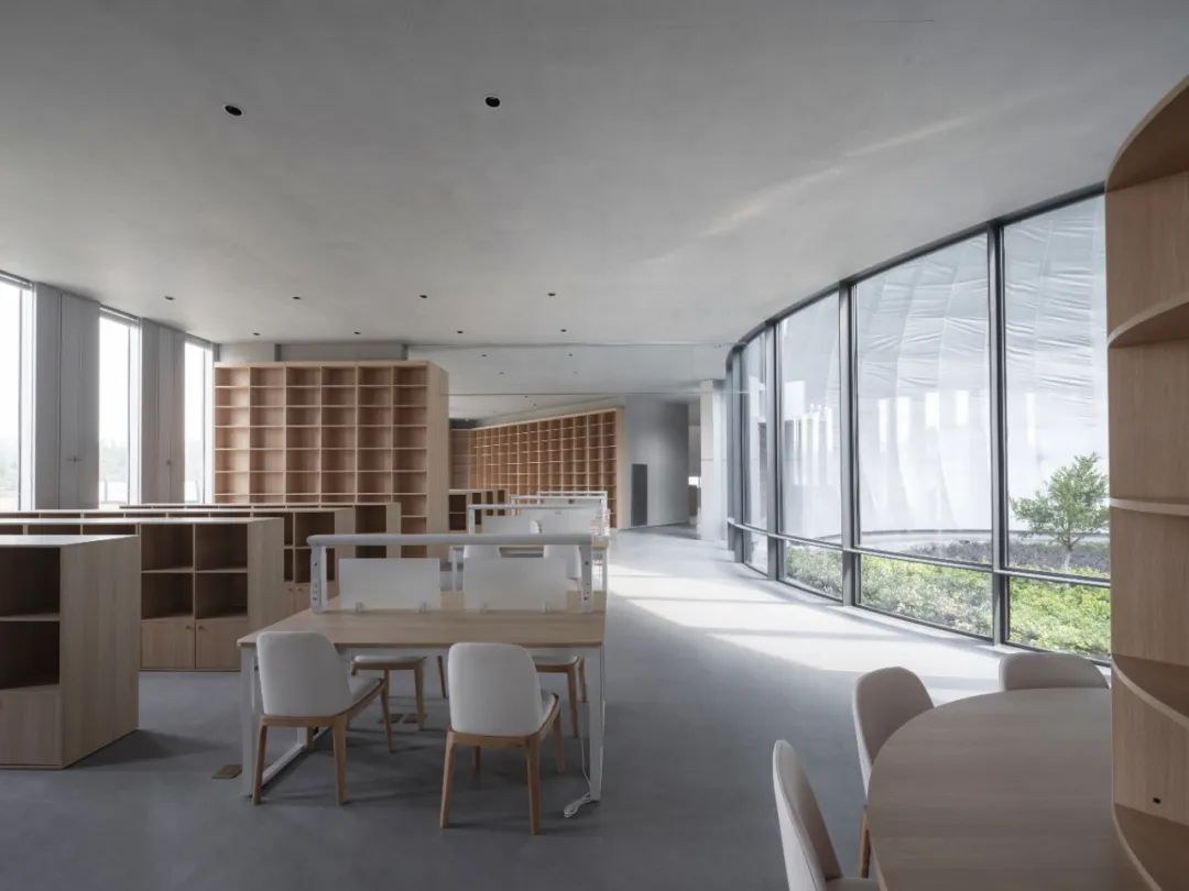 建筑设计最终整合了各种空间要素,呈现出一种纯净和内敛的气质,无论是外部还是内部都创造了富有几何稳定感和流动性二元体系对立统一;空间秩序及体验感的建立均以真实建构为原则,展现出空间场域的力量;绿色舒适的内外空间希望为阅读者提供可感知的场所,打造出独特阅读新空间。