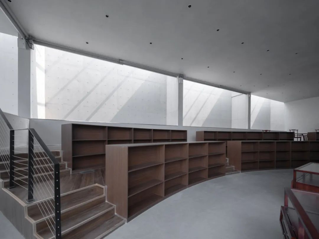 北侧阅读空间围绕月亭环形布展,形成流动的延展的平面空间。除了个别有特殊功能需要的房间,其余空间都以开放空间的形式出现。这种空间秩序清晰地反应了建造逻辑,实现了空间的流动与自由特征。