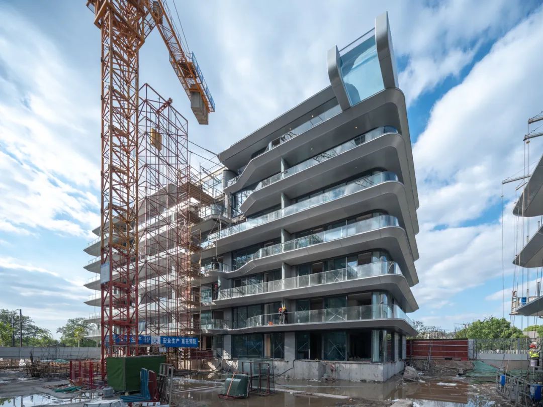 由于产品形态的调整,相较于“烟波飞鹭”,星鹭的建筑体量更加娇小。设计团队据此对墙身系统进行了优化,缩小了铝板模块尺寸,使建筑整体呈现出更为细腻、秀气而圆润的视觉效果。