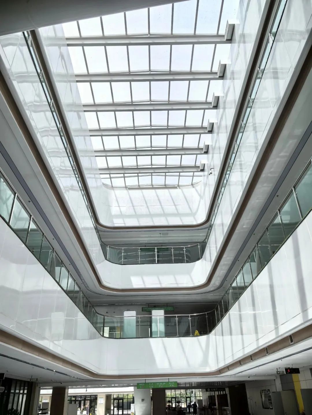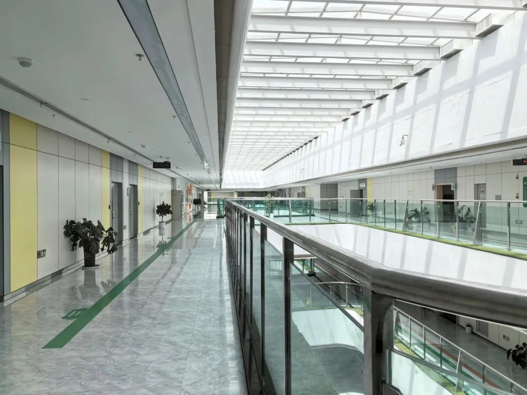 内部流线设计精准实现 “人车分流、洁污分离”,北侧主入口承接门诊流量,东侧急诊入口缩短抢救时间,南侧独立通道服务感染区域,1329 个停车位与智能导引系统让就医体验更便捷。