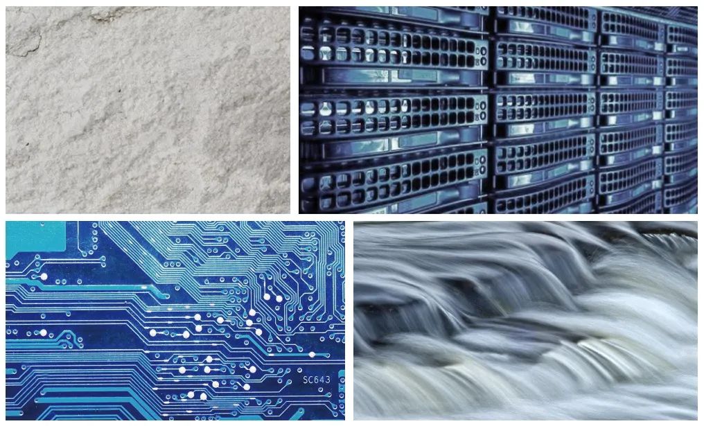 立面造型上,以“银石矩阵、数据源流”为题加以演绎:通过首层以上建筑形体的出挑、不同材质的大块面对比,造型线面的连续转折,化解各单体——特别是机房区建筑超大体量所形成的压迫感与单调感;以兼具历史—现代感与良好文化寓意的材质对比(银、石)与组合形式(矩阵),以及从集成电路中提炼抽象的与数据流相契的立面元素(成组错动,长短、进深模数变化的水平向百叶)水平铺展,塑造智能数据堡垒形象,力求兼顾百年交行沉稳大气的国有金融企业气质与数据中心的数字化、科技感、时代感特质。