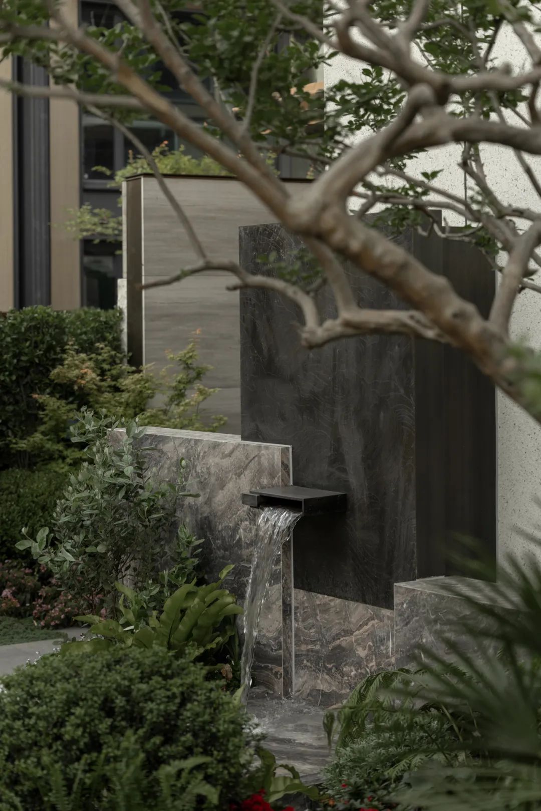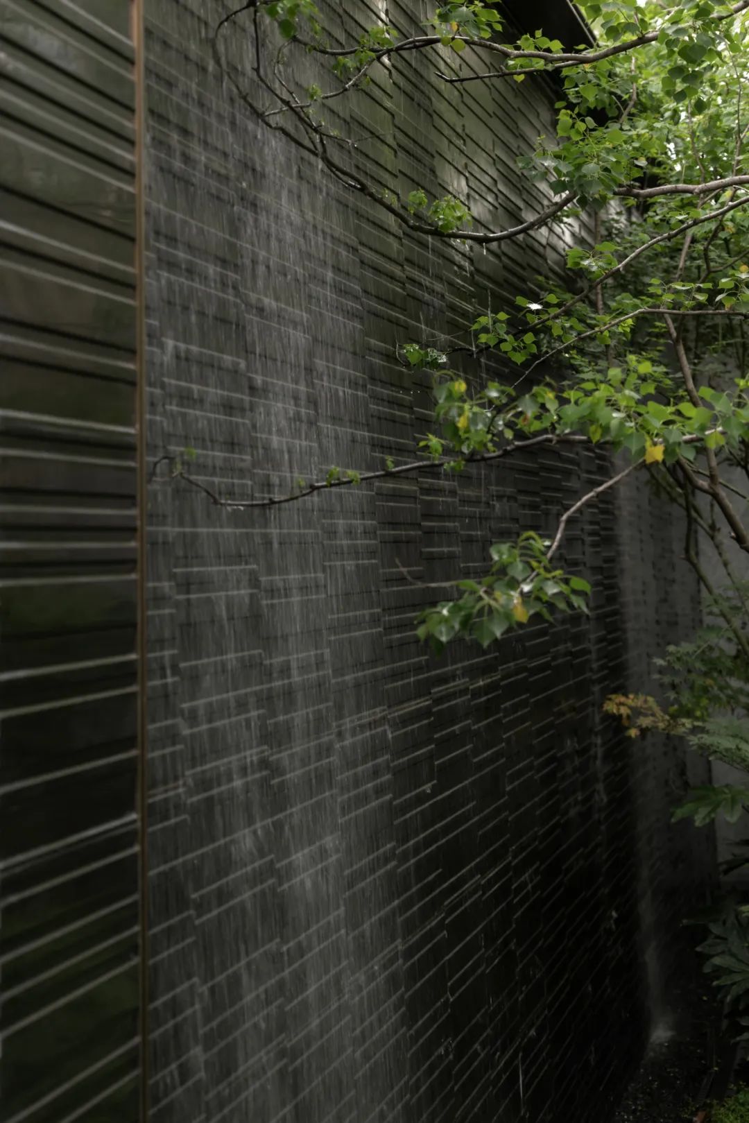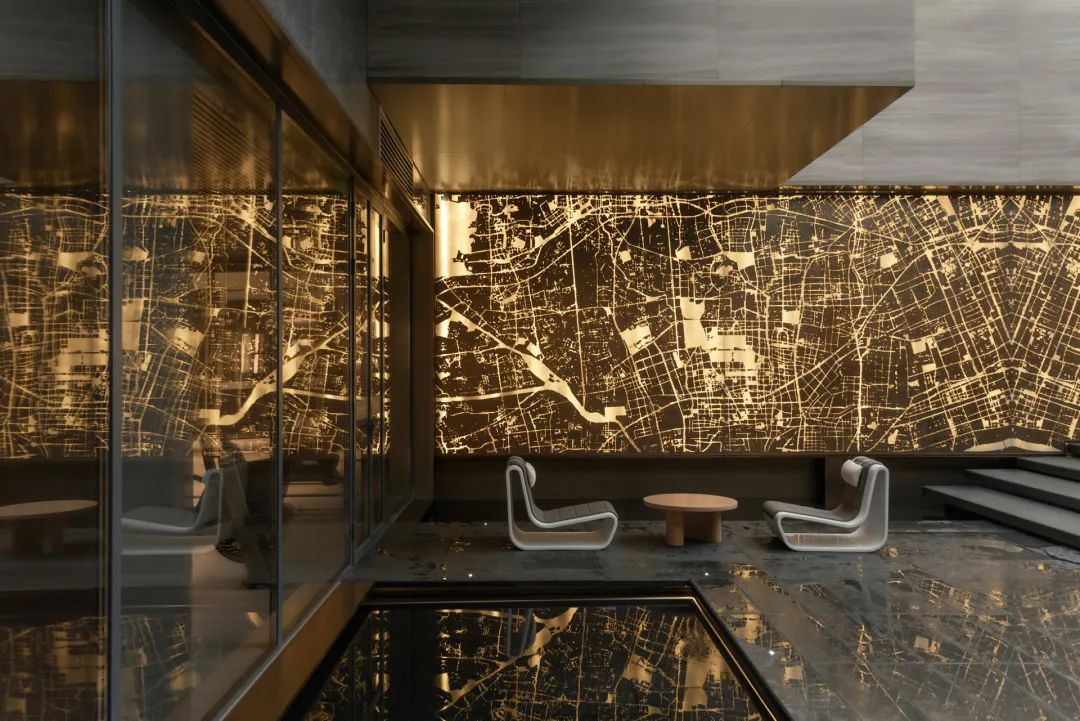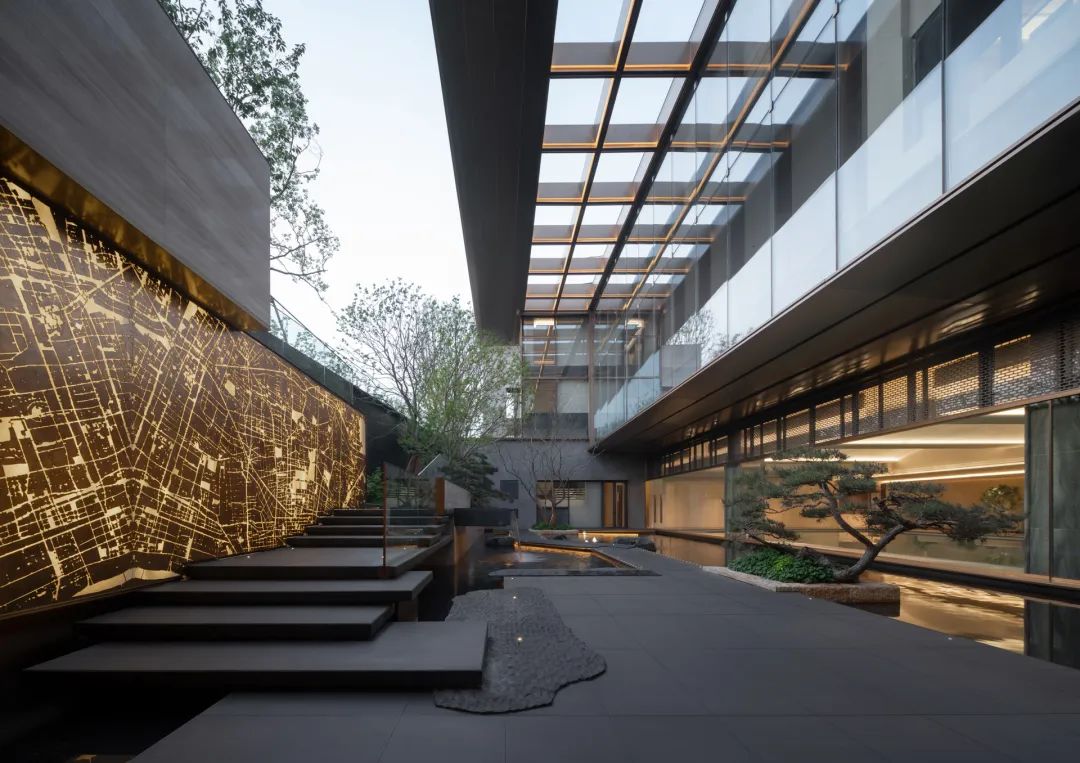 循着潺潺流水声,脚步不由自主地被牵引着。行至下沉空间,眼前景象,仿若 “一折山水一折诗”的古老意境。从那缥缈的诗句中,唤出于眼前的这幅流动的诗意画屏。