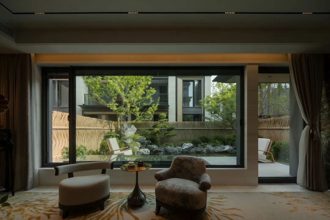 Following the sound of gurgling water, your steps are involuntarily drawn. When you walk to the sunken space, the scene in front of you is like the ancient artistic conception of "a fold of mountains and rivers, a fold of poetry". From the ethereal poems, this flowing poetic painting screen is summoned in front of you.