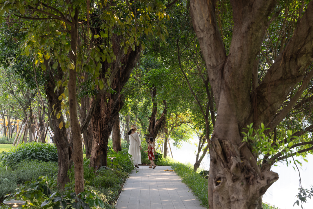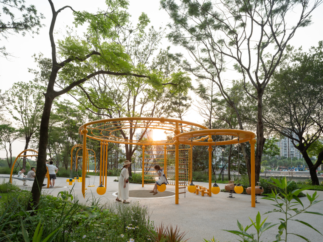 以传承自然健康的亚运精神为灵魂,旨在修复并强化滨水生态系统,探索自然、建筑与社区的无缝共融,最终打造一个全民可及、全时共享、充满自然野趣与蓬勃生机的城市滨水活力客厅,为亚运遗产注入持久生命力,也为高密度新城中滨水公共空间的营造提供实践样本。