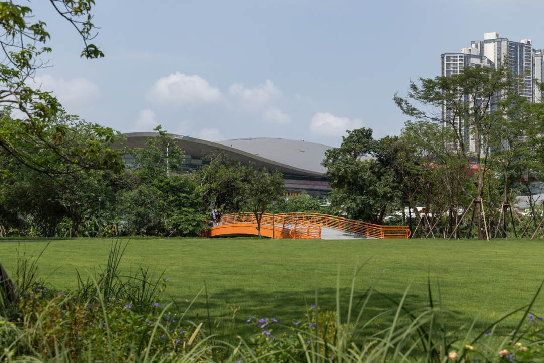 南侧景观桥对接广州亚运体育馆,延续亚运精神