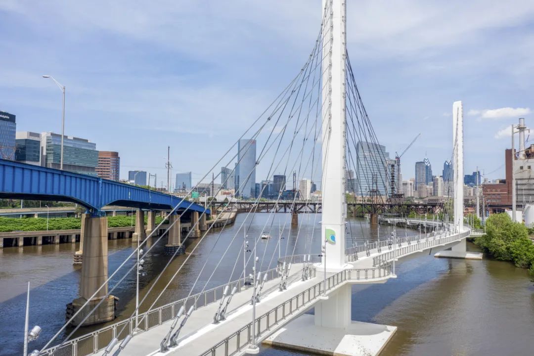 凭借其极具视觉冲击力的斜拉桥设计,斯库尔基尔河步行桥(Schuylkill River Pedestrian Bridge)不仅为当地居民提供了一个全新的出行选择,也为费城增添了一道亮丽风景线。