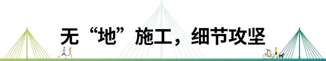 由于该段无土地基础,全部施工需在水上开展。团队依托传统工艺建成了造型优雅且体验优良的复杂结构:外部合作团队通过精准规划,应对潮汐河流施工难题:梁体异地预制后经河上驳船运输,实现水上高效组装;水下钻孔桩基础施工则针对多变土壤、冲刷问题及环保要求做了特殊处理。