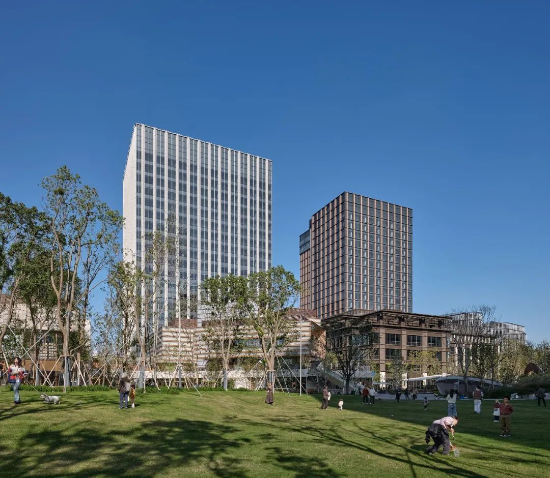 这一策略通过将商务功能与公园景观有机融合,不仅提升了办公环境的品质感,更创造了丰富的公共活动空间。项目同时集高端商务、休闲商业、生态景观于一体的新型商务生态综合体,为上海增添一个兼具国际范与本土特色的城市新地标。