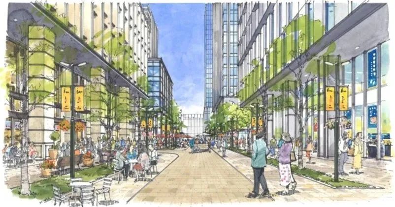 在行人尺度的规划中,本项目充分借鉴了东京丸之内仲大街"步行者优先"的先进理念,通过精心设计连续的商务建筑低区柱廊空间系统,构建起全天候的无风雨步行连廊网络。