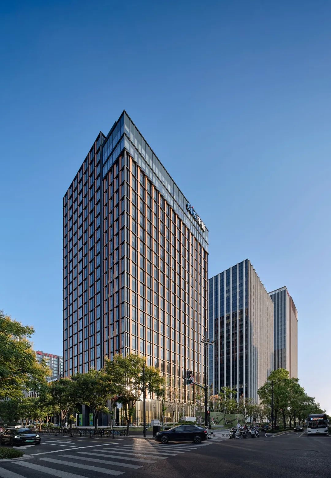 在城市尺度上,设计团队精心考量多维视角的视觉体验:针对高架路车行视角,在建筑高层部分通过赋予不同的材料个性与特色地差异化材质处理,塑造富有识别度的立面表情;通过精心设计的天际线高度轮廓,既彰显单体建筑的个性魅力,又强化了整体都市空间的韵律美感。