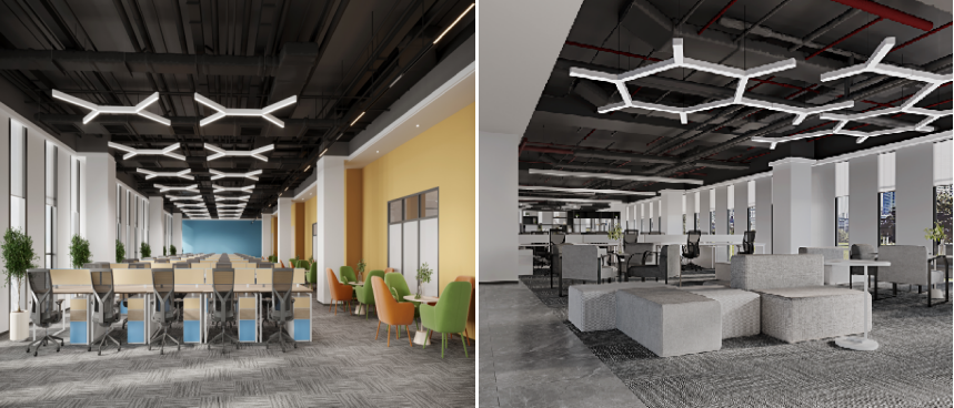 本项目以“SOUL”为核心打造办公空间,将科技感、现代化与生活化元素融入办公环境。基于现有大空间厂房条件,需增设功能性房间,因此必须对原机电系统进行全面改造。为避免系统改造过程中的失误导致工期延误,西南公司设计研究院机电设计团队累计驻场60余天,在此期间,设计团队对水管、风管、桥架等管线进行实地测量并重新绘制施工图纸,为现场施工提供精准依据,有效减少返工,确保项目顺利推进。