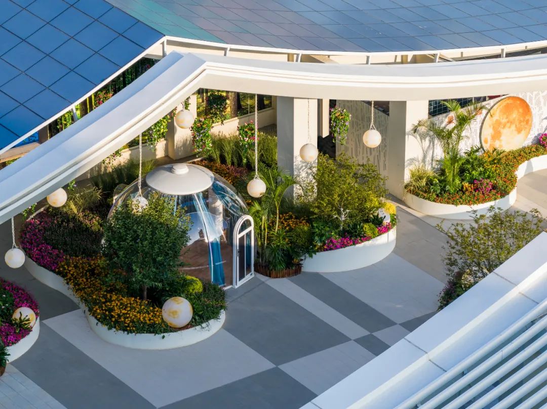 在体验中心的屋顶,一座悬浮于城市上空的“星空花园”正温柔颠覆着传统养老的想象。这里不仅是长者用餐的场所,更是一座承载天文浪漫、疗愈身心的沉浸式剧场——白天,它是触摸云端的阳光暖房;入夜,则化身连接宇宙的星光驿站。