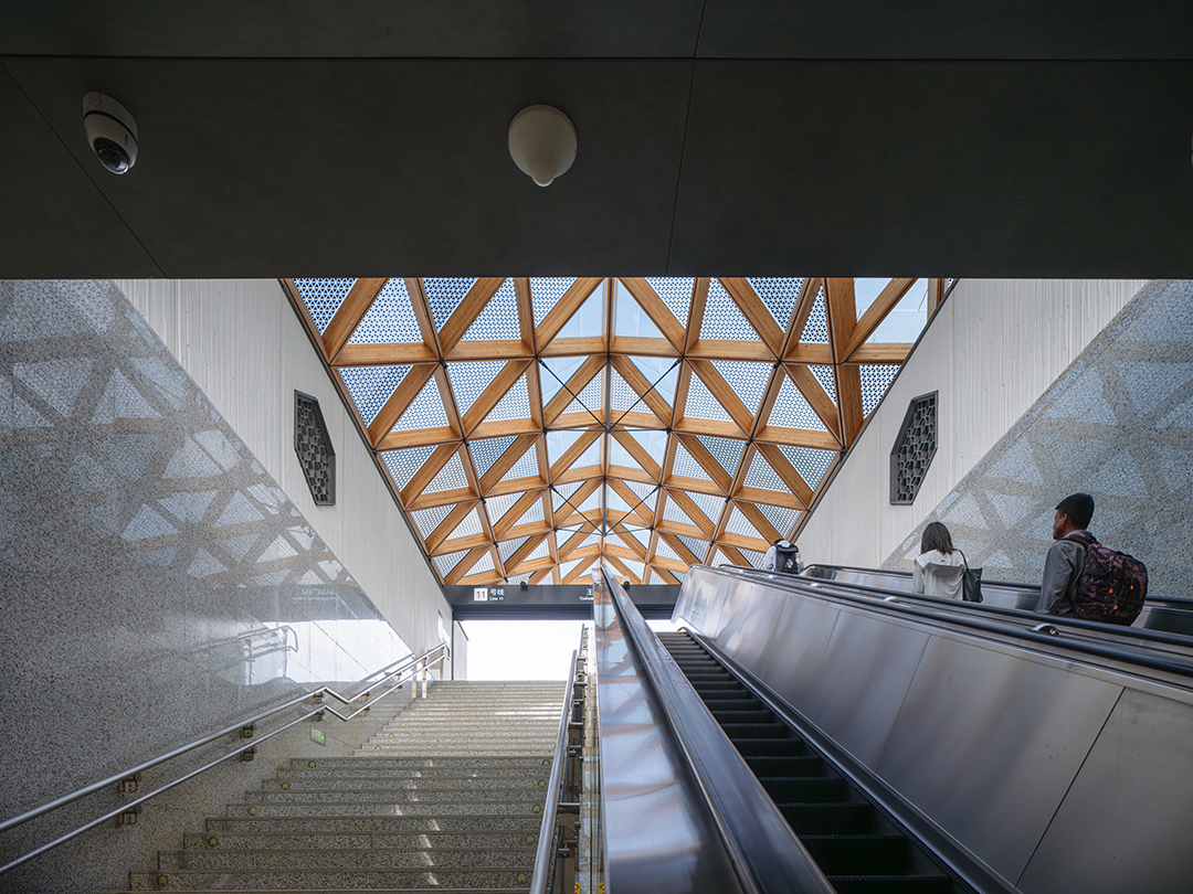 结构上:组合运用亲和性材料和轻量化结构,控制性引入自然光,实现明亮有“温度”的进出站环境。