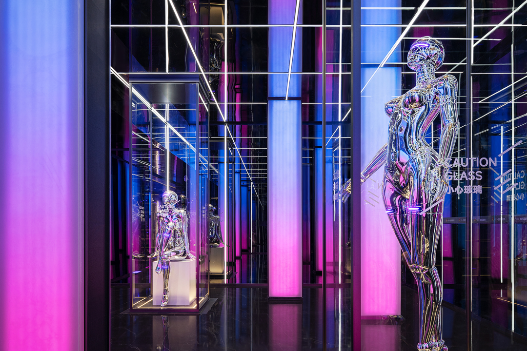 装置的下方点缀如同月亮倒影般的端景台,将「镜花水月」的概念融入场景。沿窗选用浅淡素色的户外家具,为这个可休闲落座、可对窗交谈的场景铺陈了轻盈松弛的底色。这是一个如空中花园般的空间,平静,开放,舒展,充满光与灵气。