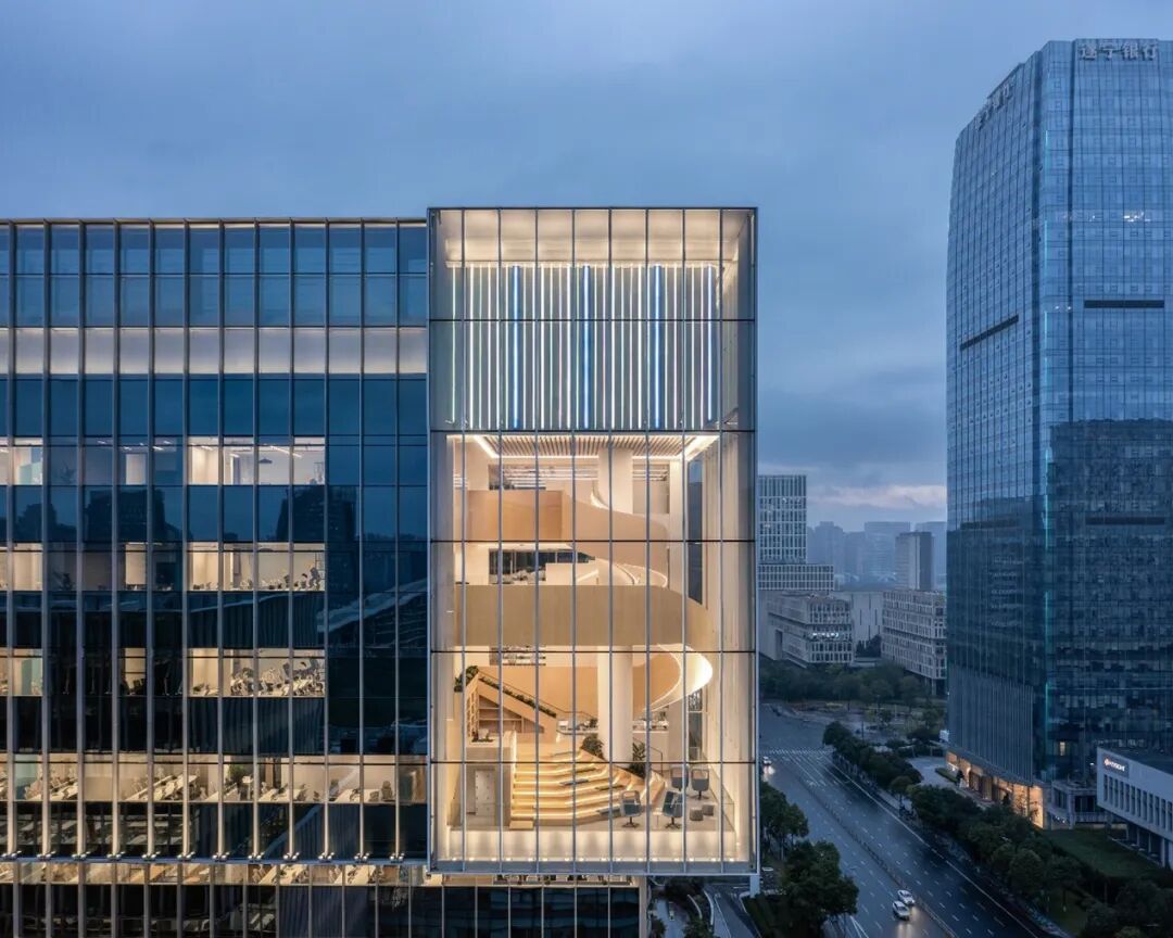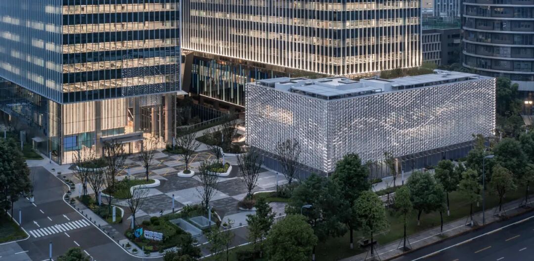 建筑以错动的方形体量作为设计元素,保证了新老建筑的整体协调风格。外观形式简约,现代,彰显抖音集团以及高新区现代科技感,以及两者年轻跃动的城市形象。