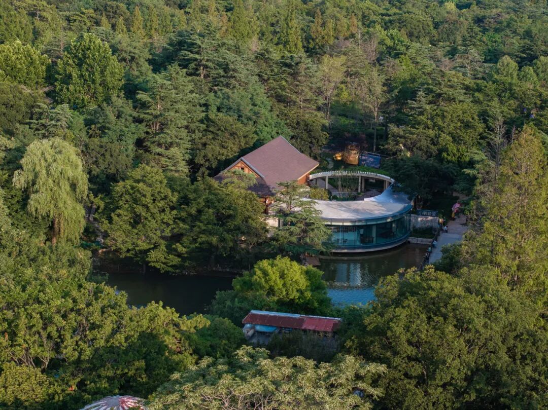 改造后的小熊猫馆以消隐式设计融于自然肌理,建筑被蓬勃的植被群落温柔环抱,仿若绿云间若隐若现的森林居所。建筑主体通过悬挑向湖面轻盈延伸,形成凌驾于天鹅湖之上的观景视廊,与环境有机相容,相得益彰。