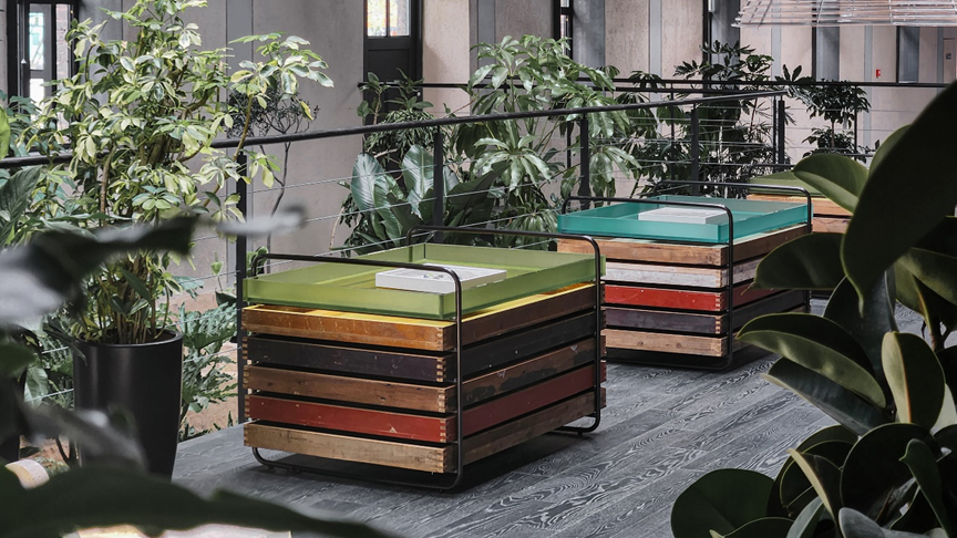 回收老木与彩色亚克力的展台©️FLIP studio