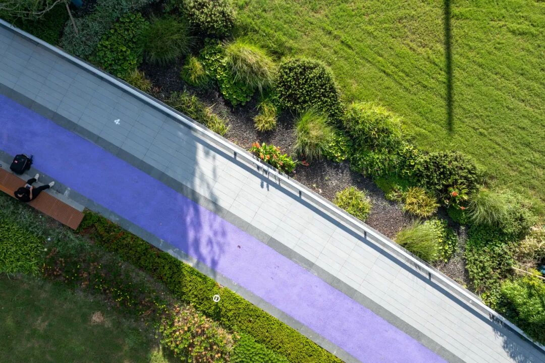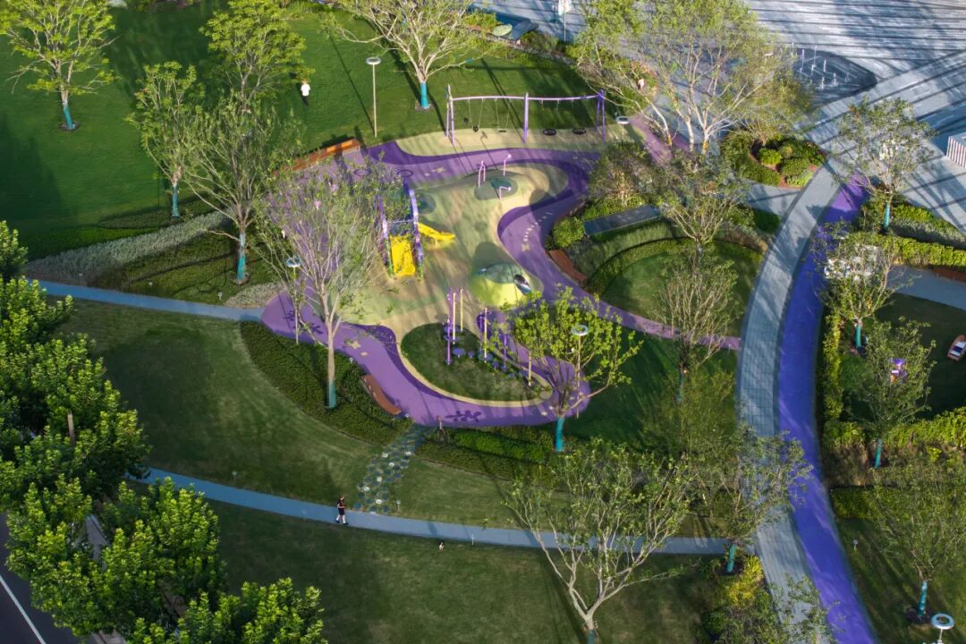 作为与城市的过渡界面,南侧公共绿地以生态为线索,巧妙缝合了城市公共空间与项目内部环境。它既是漕宝路历史文脉的当代延续,也是标榜徐汇区城市形象的重要廊道,同时承载着形象展示、市民休闲及人流集散引导等多重使命,更成为连接过去与未来、城市与社区、自然与人文的活力纽带。