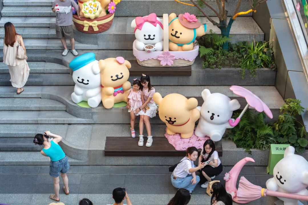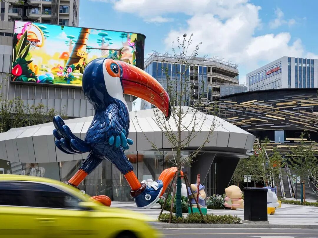 广场沿街设置的IP雕塑成为区域标志性艺术焦点。其独特形态不仅强化了场所辨识度,更通过可触摸、可合影的互动性,激发市民参与感,塑造令人向往的艺术体验式商业空间。