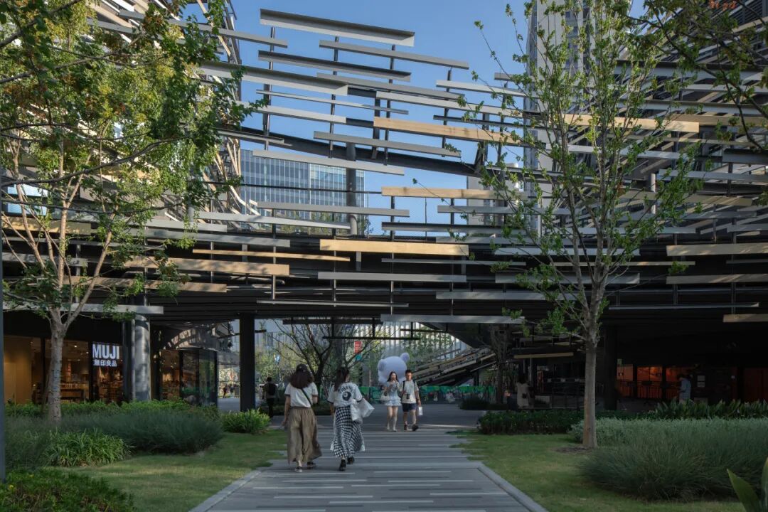 在上海漕河泾开发区的高密度街区间,一片曾经边缘化的城中村正经历着深刻的转型。基地紧邻曾经的田林夜市,与历史悠久的桂林公园隔街相望,形成独特的新旧对话格局。鑫耀光环跳脱传统商业综合体的开发逻辑,深度融入城市肌理,致力于缝合城市碎片、激活片区活力。它不再是孤立的开发,而是以生态、商业与文化共生的方式,探索高密度城市环境中如何通过景观赋能,实现街区的可持续重生与社会价值重塑。