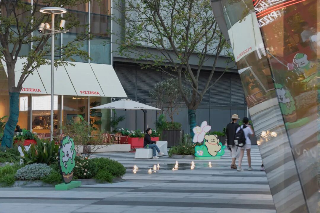 商业沿街界面通过艺术造型种植池巧妙区隔商铺外摆区与城市人行道,在保障通行效率的同时营造丰富的街道景观层次。