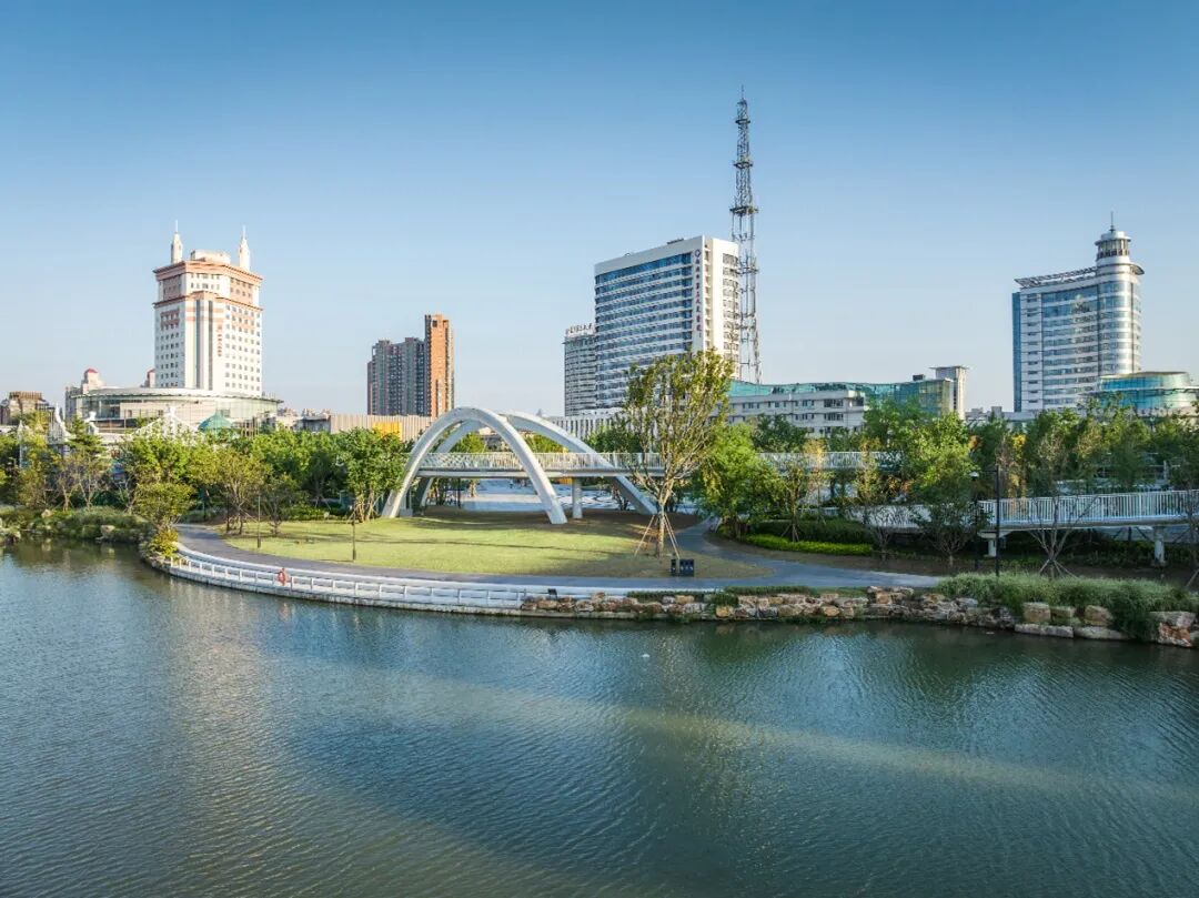 北侧的南通古护城河——濠河,是优质的城市界面,设计将其完全打开,在濠河和体育公园之间形成全新的“介”面,增加空间的友好性。