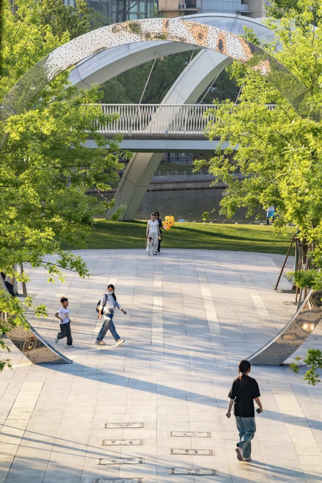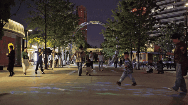 冠军大道端头约500平方米的弹性广场成为了公园的一处活力中心。这里日常是人们交流散步的好去处,清晨是广场舞阿姨的主场,夜晚是孩童追逐灯光的小天地,特殊的时间又可以举办露天音乐会、艺术市集,为市民提供文化消费新场景。通过广场空间的灵活组织和使用,将单一的公共空间转变为复合功能体,实现资产运营增值,赋能城市生活。