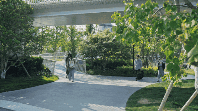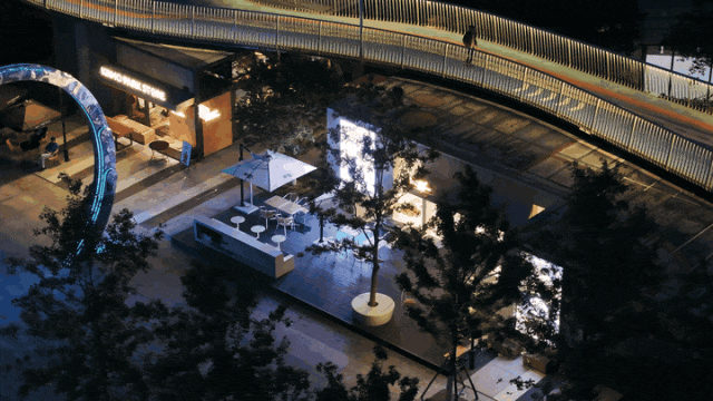 依托冠军大道旁的桥下空间,设计植入咖啡、茶饮、酒吧等 “小盒子” 业态,在满足市民休闲需求的同时,以商业运营反哺公共服务,为驿站提供饮水、充电等便民支持。这种 “商业 + 公益” 的融合模式,让公园突破单一功能局限,转型为复合型城市会客厅,实现了活力与价值的双重提升。