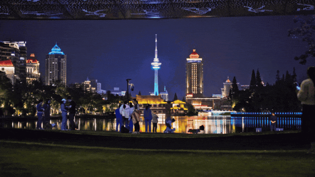 夜幕降临下的濠河美景