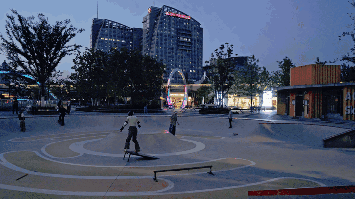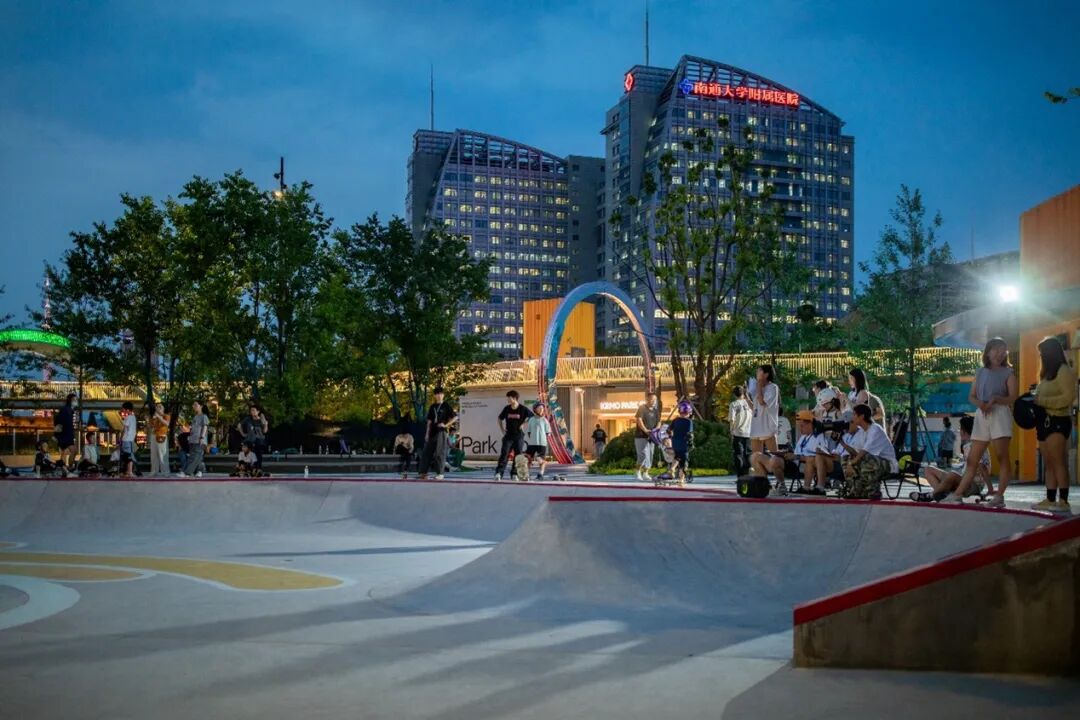 650 平方米的极限滑板场覆盖不同年龄段需求,现已成为街头文化爱好者的集聚地。除了日常活动,还成为每年8月南通滑板日活动的举办地。