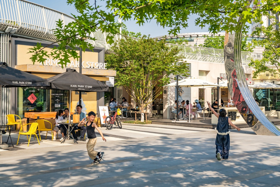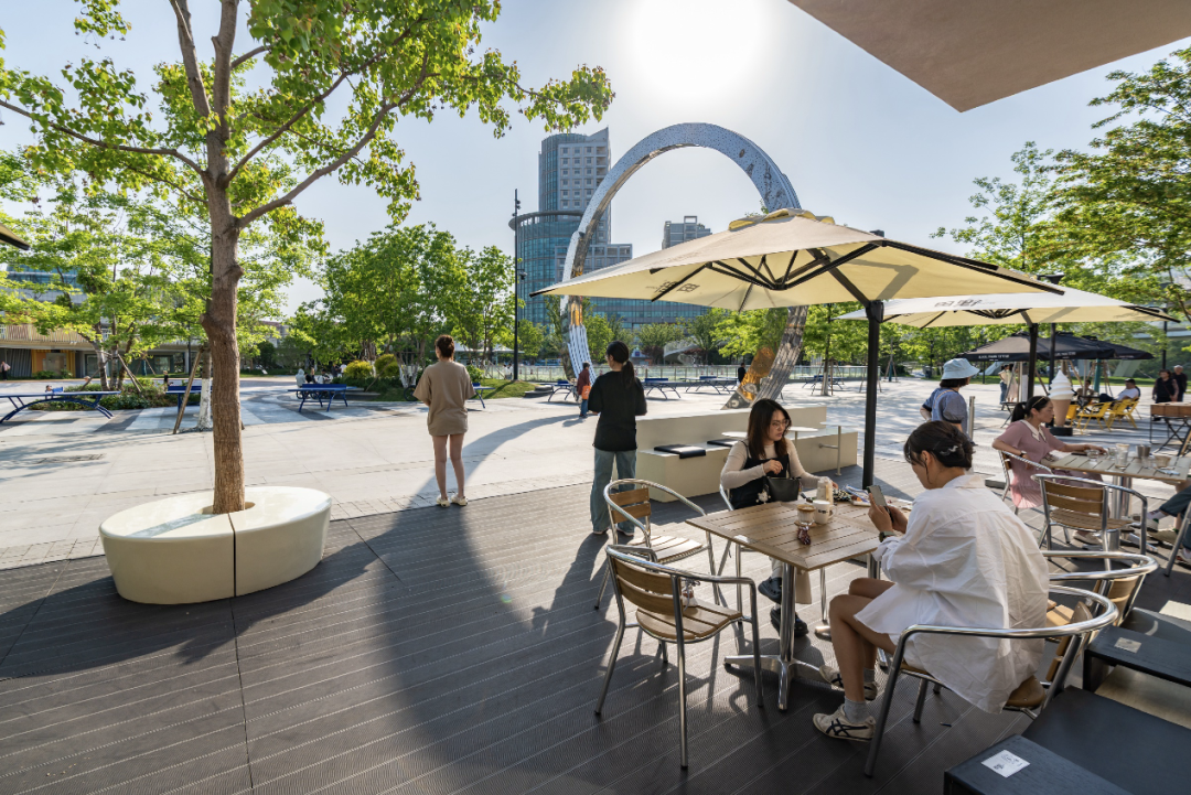 设计团队在城市界面营造街景氛围的同时,通过微地形和植物密度等元素,在场地的西侧和南侧营造内向型视线,保障园内活动在视线、声音、微气候等方面的舒适度,从而增加使用者在场地的停留时间,进而促进场地活力和商业潜能。