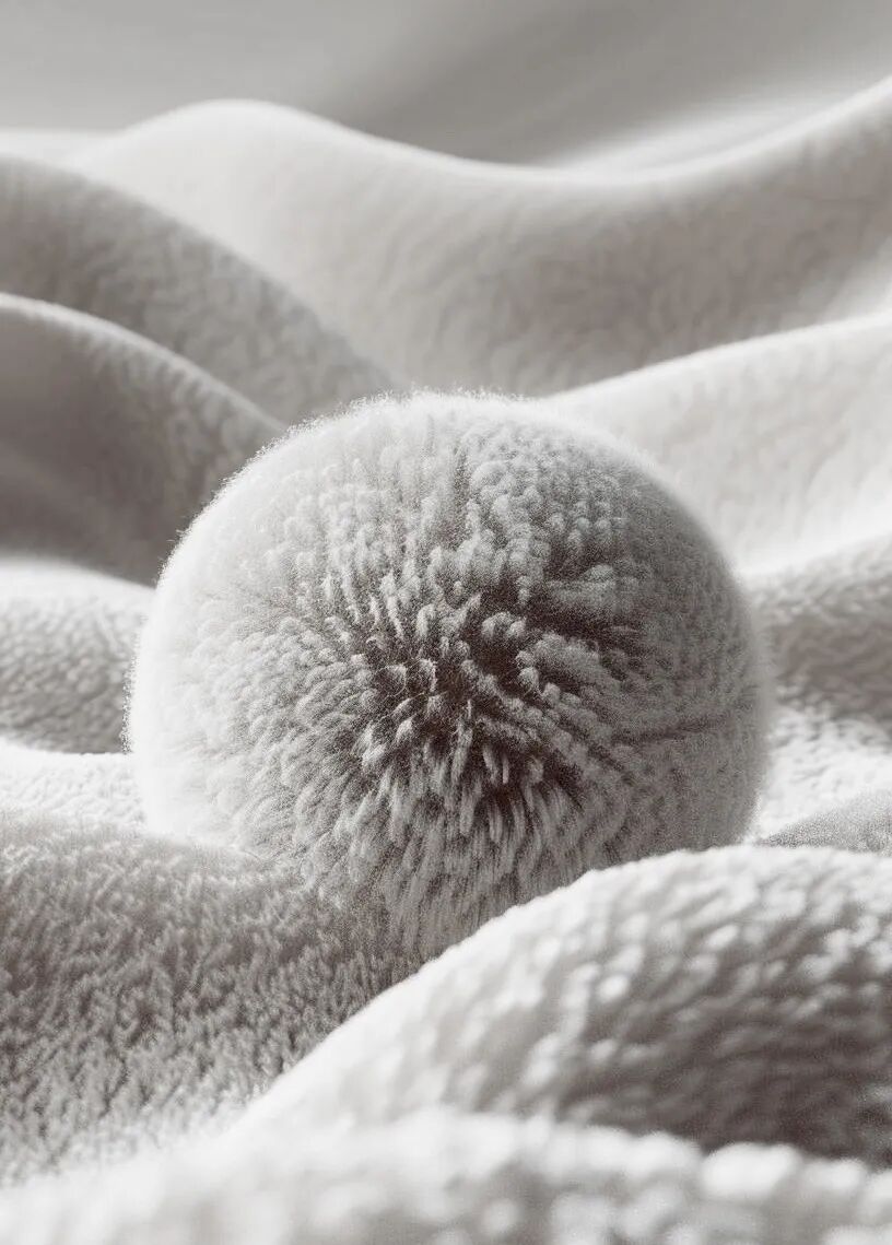 聚力科技的核心工艺——“绒面加工”,是通过将布料表面转化为绒球结构以提升保暖性能。这一技术特性成为设计概念的起点:绒球的圆形形态、雪球的积累感、水珠的汇聚意象,恰好与企业名“聚”的内涵相呼应。