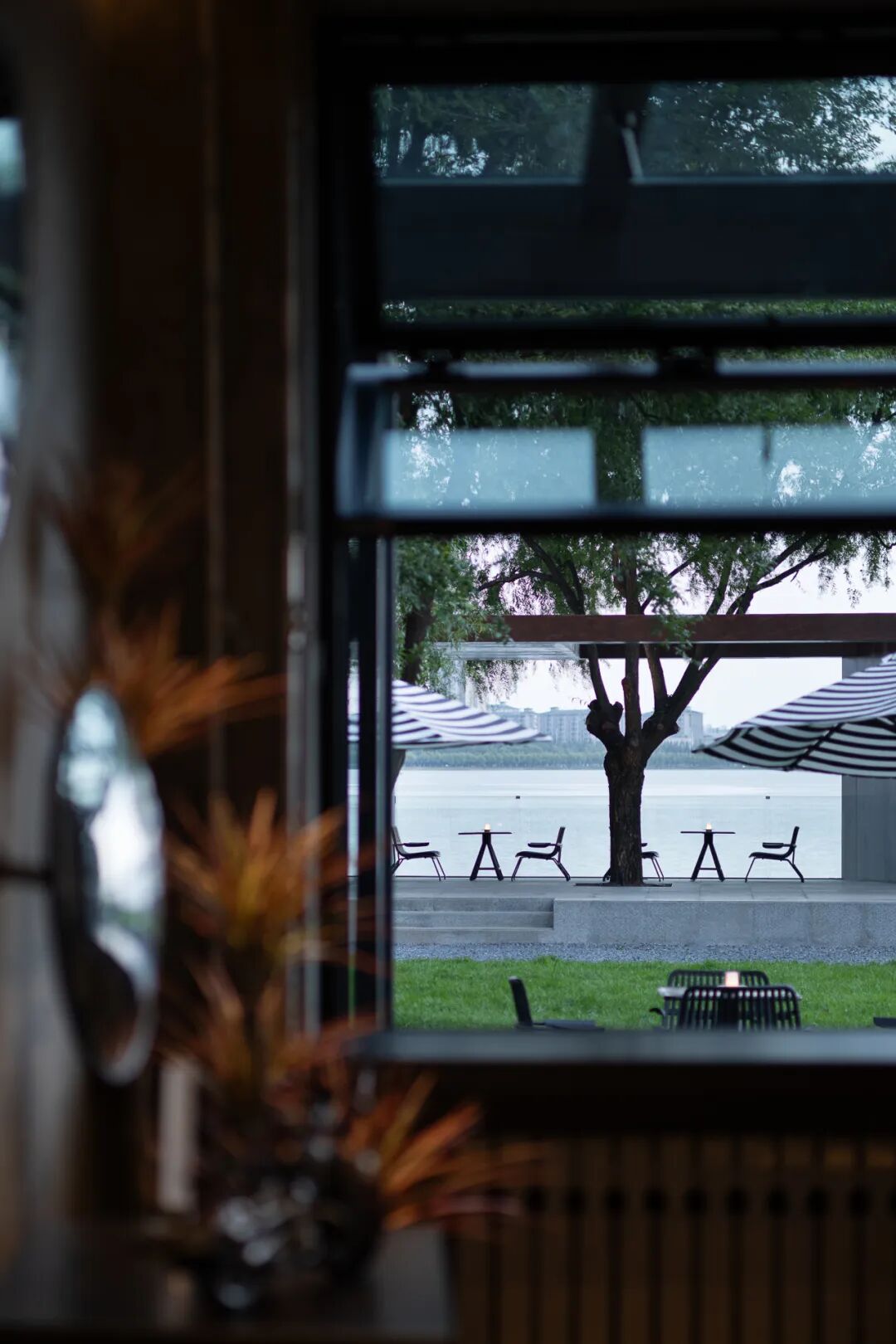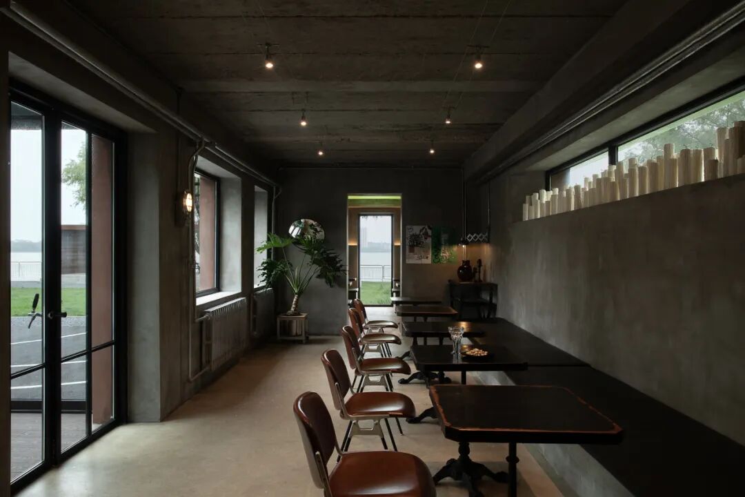 空间的视觉焦点放在活动与湖景的互动上。借助自然光与窗外景致,湖岸成为活动的延伸,使人们的体验始终与环境绑定。让空间中的人自然成为场景的主角,营造出一种日常而富有生活气息的氛围。