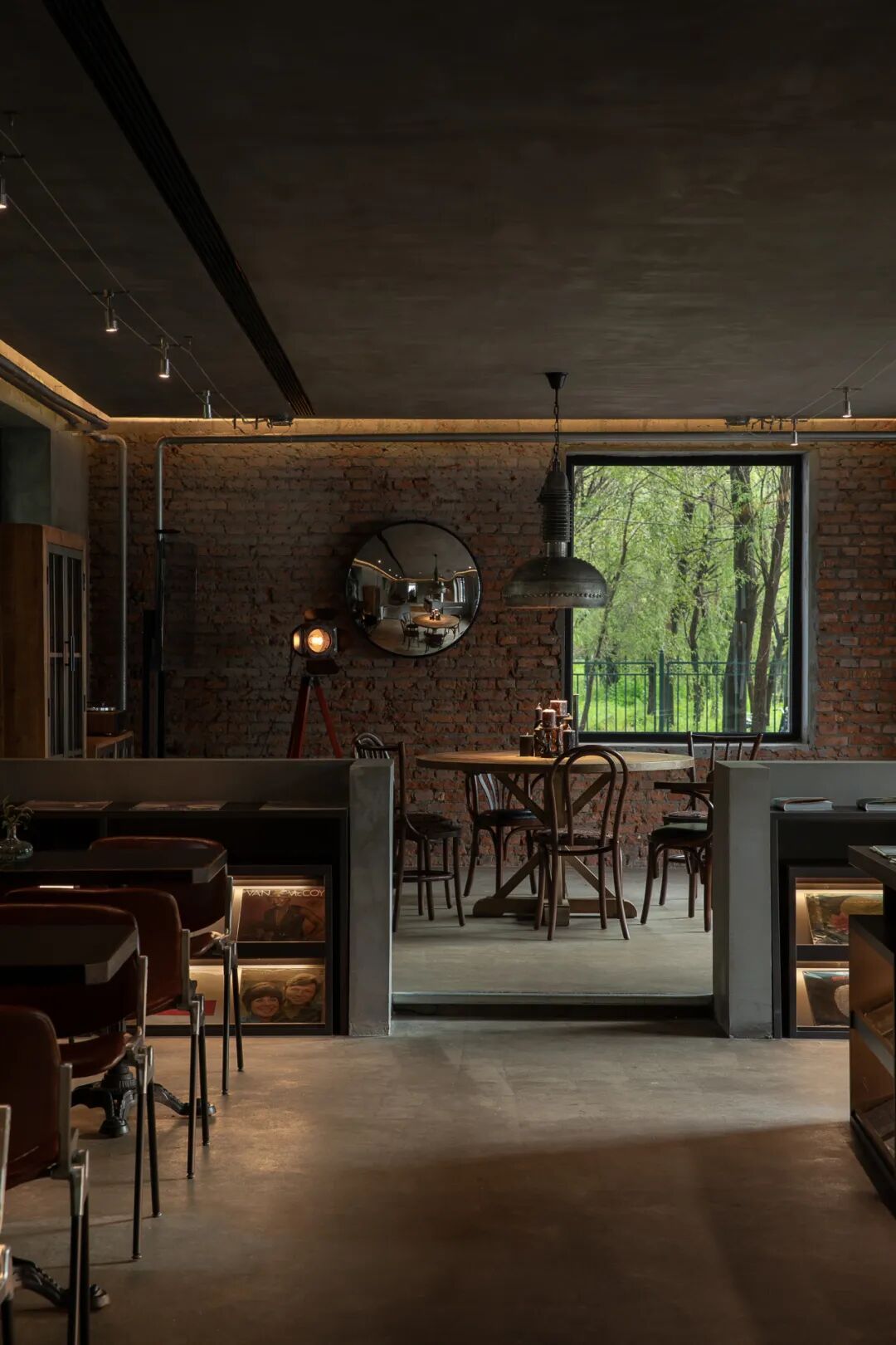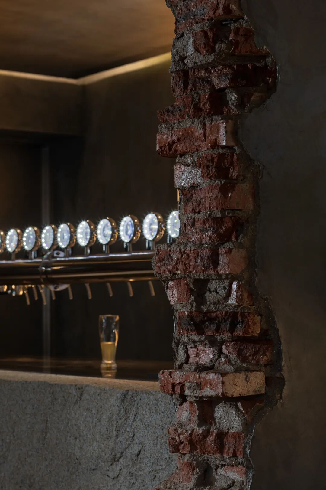 现场原有的红砖墙被保留并裸露呈现,借助材质本身的肌理与历史感,传递出场地的原始叙事。砖墙与金属的并置形成粗犷与精致的视觉碰撞,在对比中强化了空间的张力与记忆点。