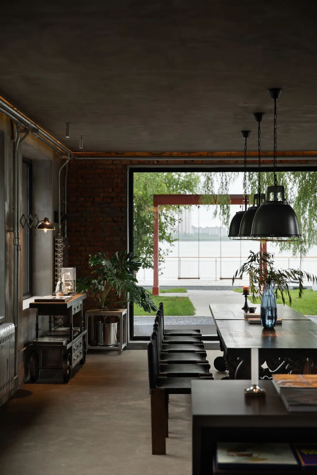 建筑在不破坏原始结构的情况下最大化开窗营造通透的空间体验,将自然光线与外部绿意引入室内。原有的红砖墙面作为历史肌理被完整保留,呈现出真实的质感基底。软装以工业风为核心,营造多层次的打卡氛围。来到这里的人可在此自由探索、互动与拍摄,在工业基调与自然景观的交融中,自定义属于个人的空间体验与记忆瞬间。