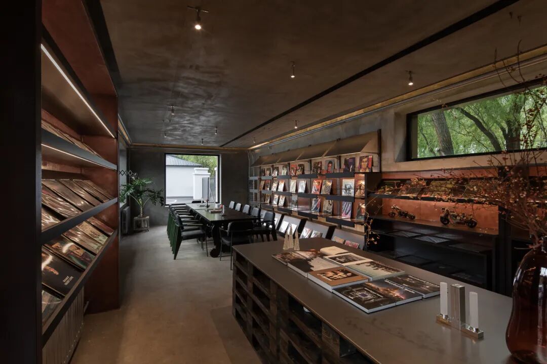 陈列的唱片呈现出秩序感与节奏,与裸露的管道及高窗引入的绿意相结合,共同营造出滨州小院独有的活力氛围,以及自然与工业交织的感受。这样一个个性化、未被固化定义的空间,回应了人们多样化且不被定义的情感需求,也为年轻人随时分享的行为创造了场景,使空间成为充满活力的“城市更新自然秀场”。