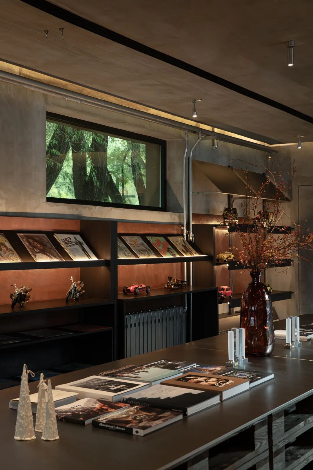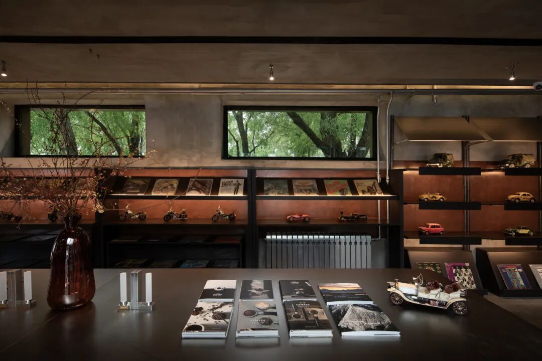 黑胶唱片、复古车与书籍摆件精心陈列,形成兼具叙事性与自由感的场景组合。这些元素在粗犷与精致、复古与当代之间构建出丰富的视觉层次。每一处细节均构成打卡画面中富有张力的背景,在社交媒体传播中持续塑造空间的身份辨识度与情绪吸引力。