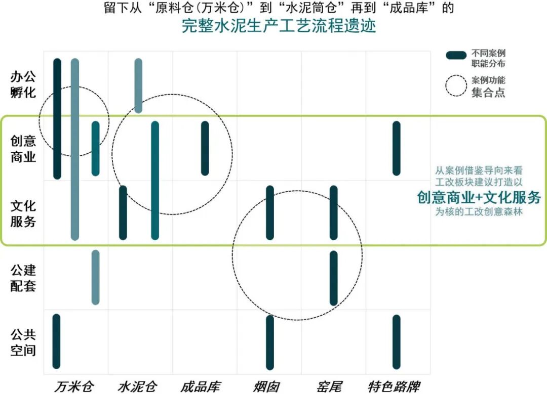 面对“保护与开发”的两难困境,AECOM团队没有选择“全留”或“全拆”的极端路径,创新提出“工业基因链”保护策略,以水泥生产工艺流线为线索,精准保护关键节点,释放非核心空间,实现“历史价值 + 产业价值 + 文旅价值”的三重激活。
