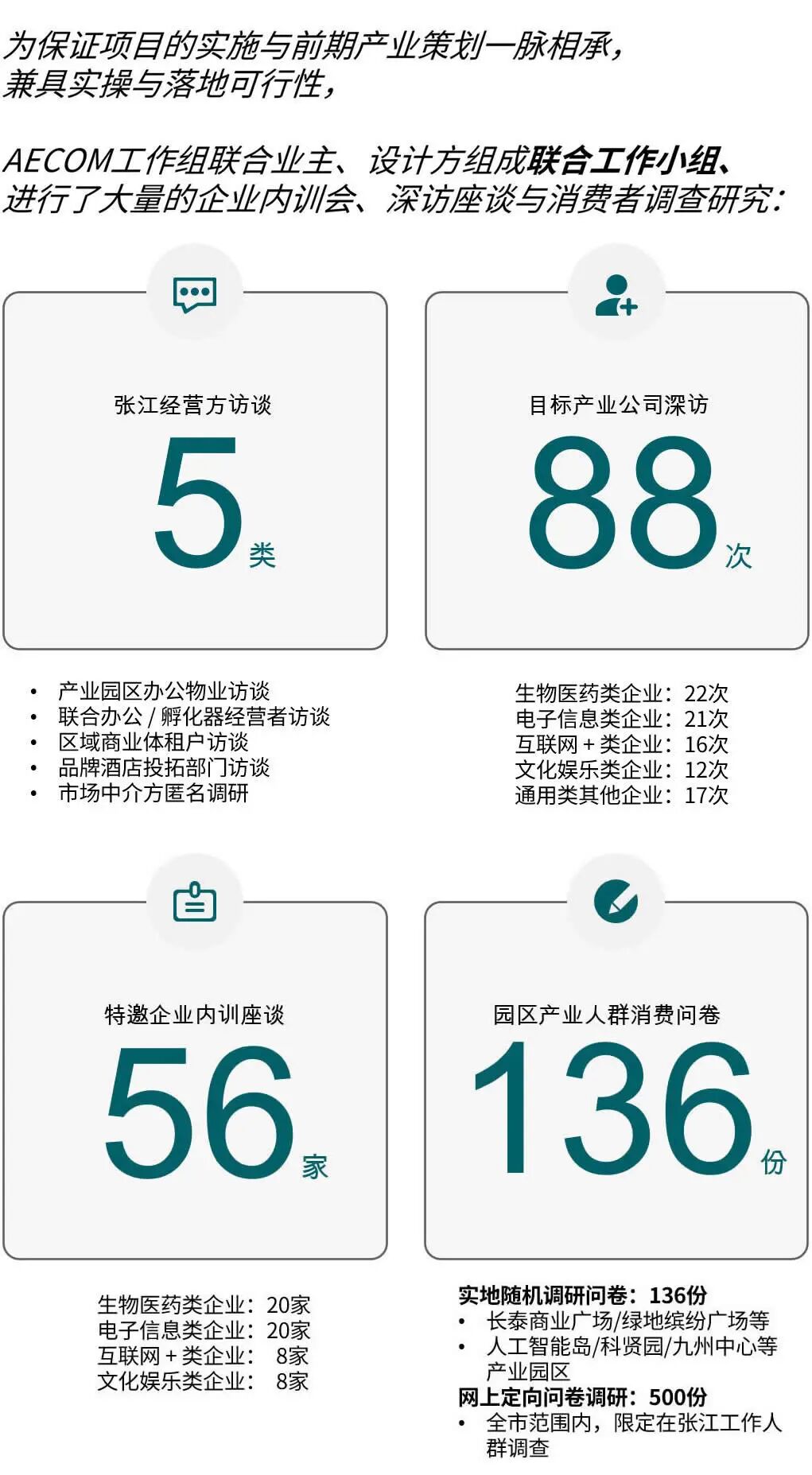 产业定位是项目成功的关键。张江科学城已有集成电路、生物医药、人工智能三大主导产业,却与水泥厂存在结构性矛盾:集成电路核心区已有成熟载体,盲目跟风易同质化;生物医药受环评限制且核心环节外迁;人工智能已有南部产业岛且企业稳定性不足。为此,AECOM构建“三维交叉验证”调研体系,历时6个月完成8大领域研判、217家企业访谈。