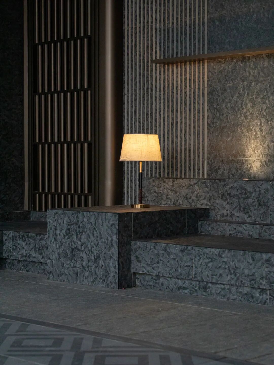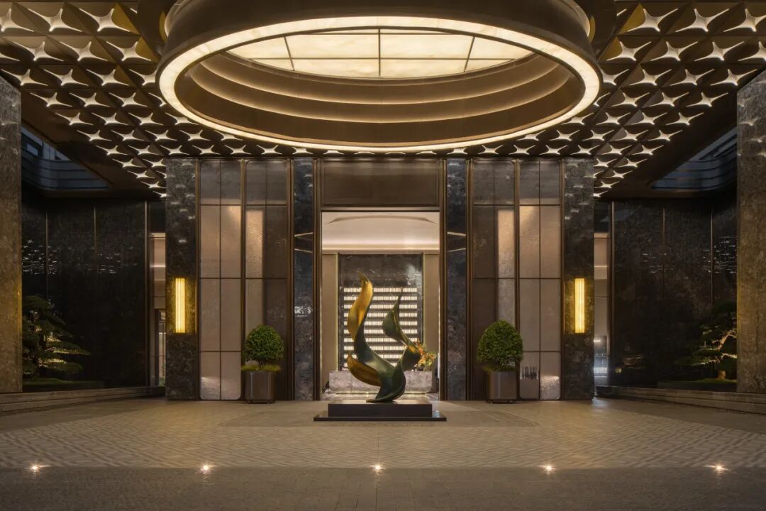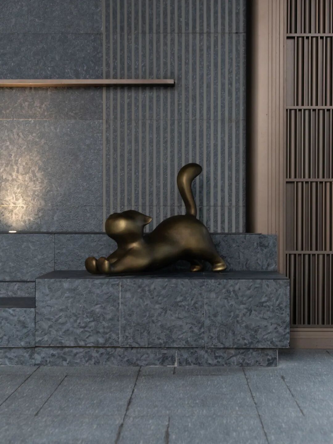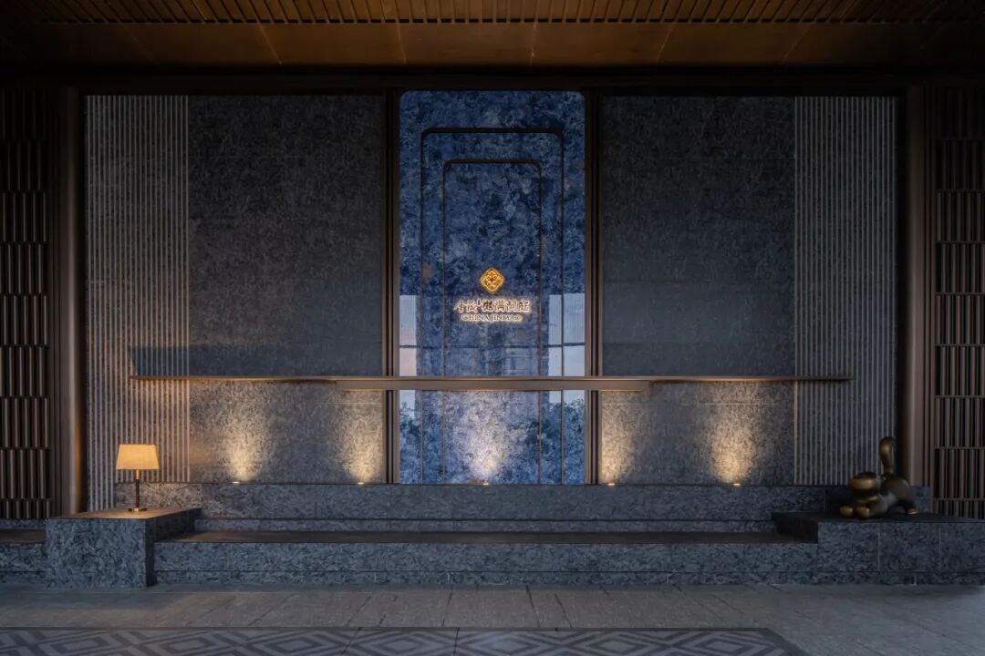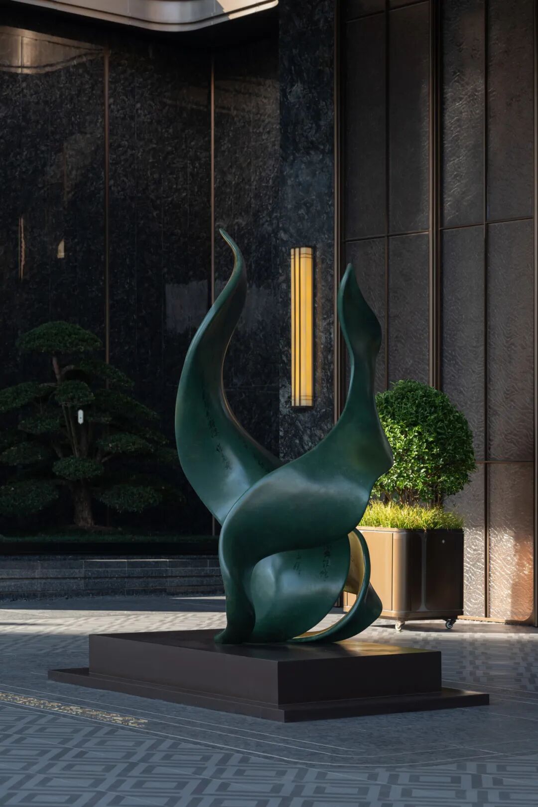 高定制艺术雕塑营造极具海派门第的仪式感和尊贵感,选用天然奢石铺装,既有千年岳阳的江湖沉淀感,又是海派美学的追求体现。