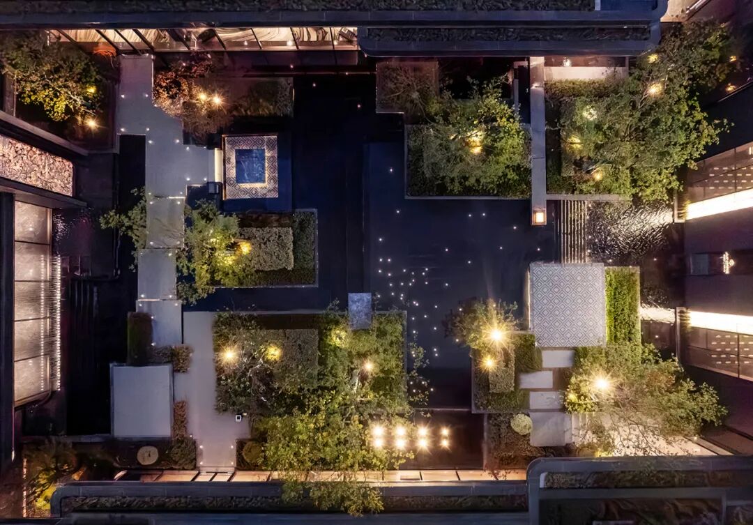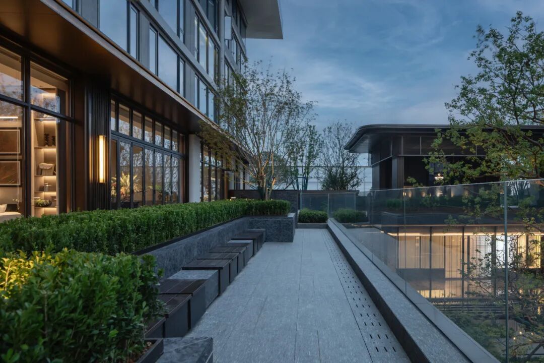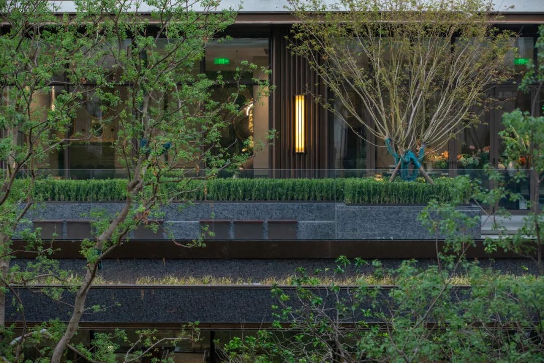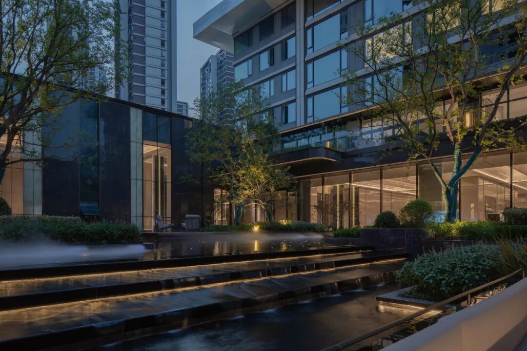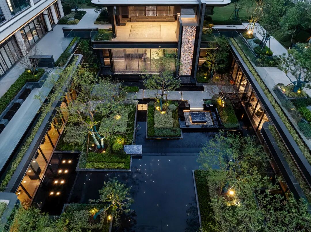 下沉式庭院会所堪称整个社区的“点睛之笔”,巧妙利用场地高差,塑造出一处约5米落差的“山涧飞瀑”,水流跌宕,声如鸣佩,成为视觉与听觉的双重焦点。在造园意境上,借鉴中国传统山水画与古典园林步移景异、小中见大的造园精髓。