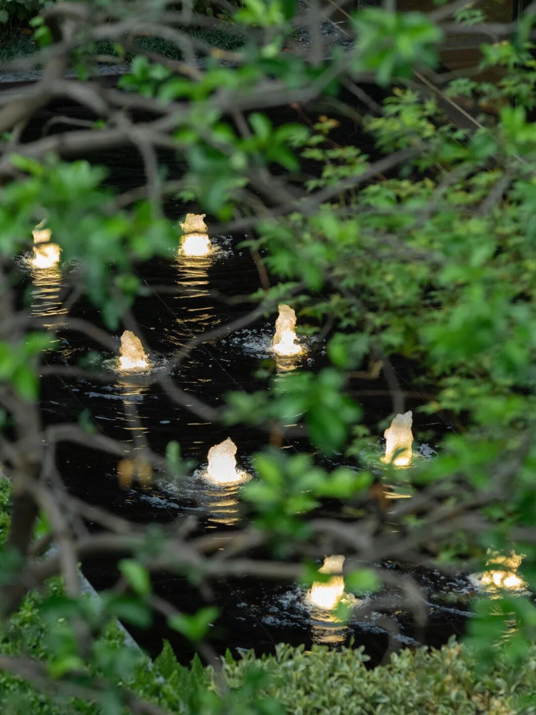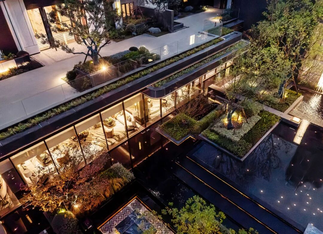 层层跌水与涌泉环绕四周,水光灵动,树影婆娑,空间在动静相宜间达成微妙平衡。这不仅是一处庭院,更是一座可游、可赏、可感的沉浸式自然剧场,让每一次归家,都成了一场奔赴自然的诗意度假。