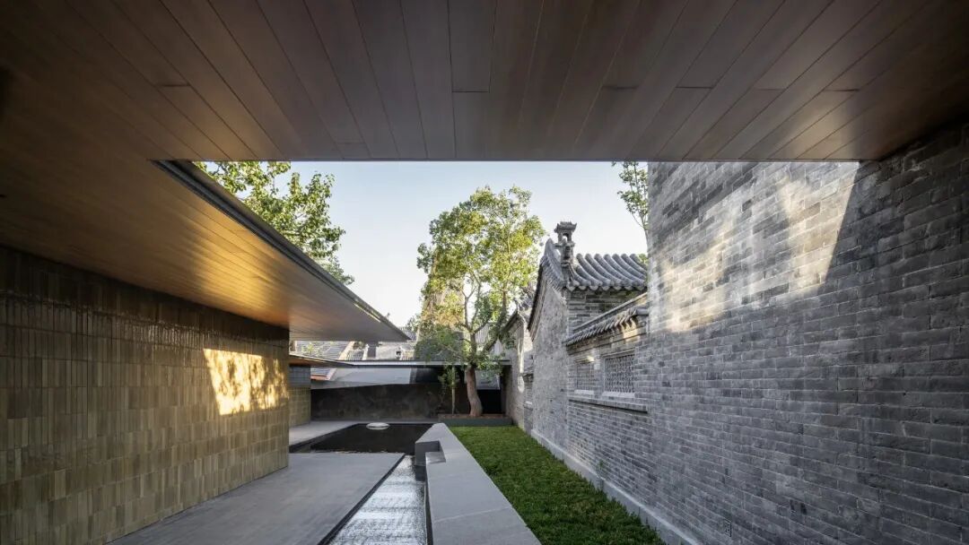 地基抬高,在有限的建筑高度内实现北方高台建筑的雄浑感;引入流水,使楼、院、巷、廊的组合不显逼仄,灵动秀逸,别有洞天;十字轴线和五个主要庭院则作为空间骨架,串联大小空间。