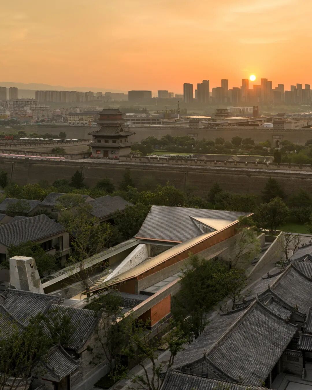建筑师以“匍匐”的姿态开启设计。“匍匐”不同于“趴着”,也不同于“直立”,要贴近历史的基底,同时保持对望的距离。酒店被视作一座吸收传统的当代建筑,既叙述厚重历史,又诠释古城当下的生机。以引领者的站位,牵引古城面向未来的文旅业态升级及生活方式变迁。